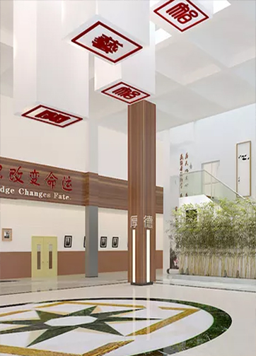 用光影、材質(zhì)對比呈現(xiàn)黨徽,如金屬鏤空 + 背光、石材浮雕 + 紅色燈光投射。將黨旗的 “鐮刀錘頭” 線條抽象化,與本地文化符號融合